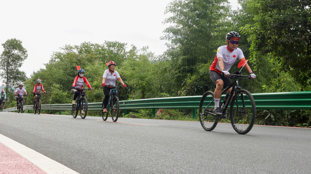 骑行爱好者驰骋在新公路上。(邓浩然 摄影)