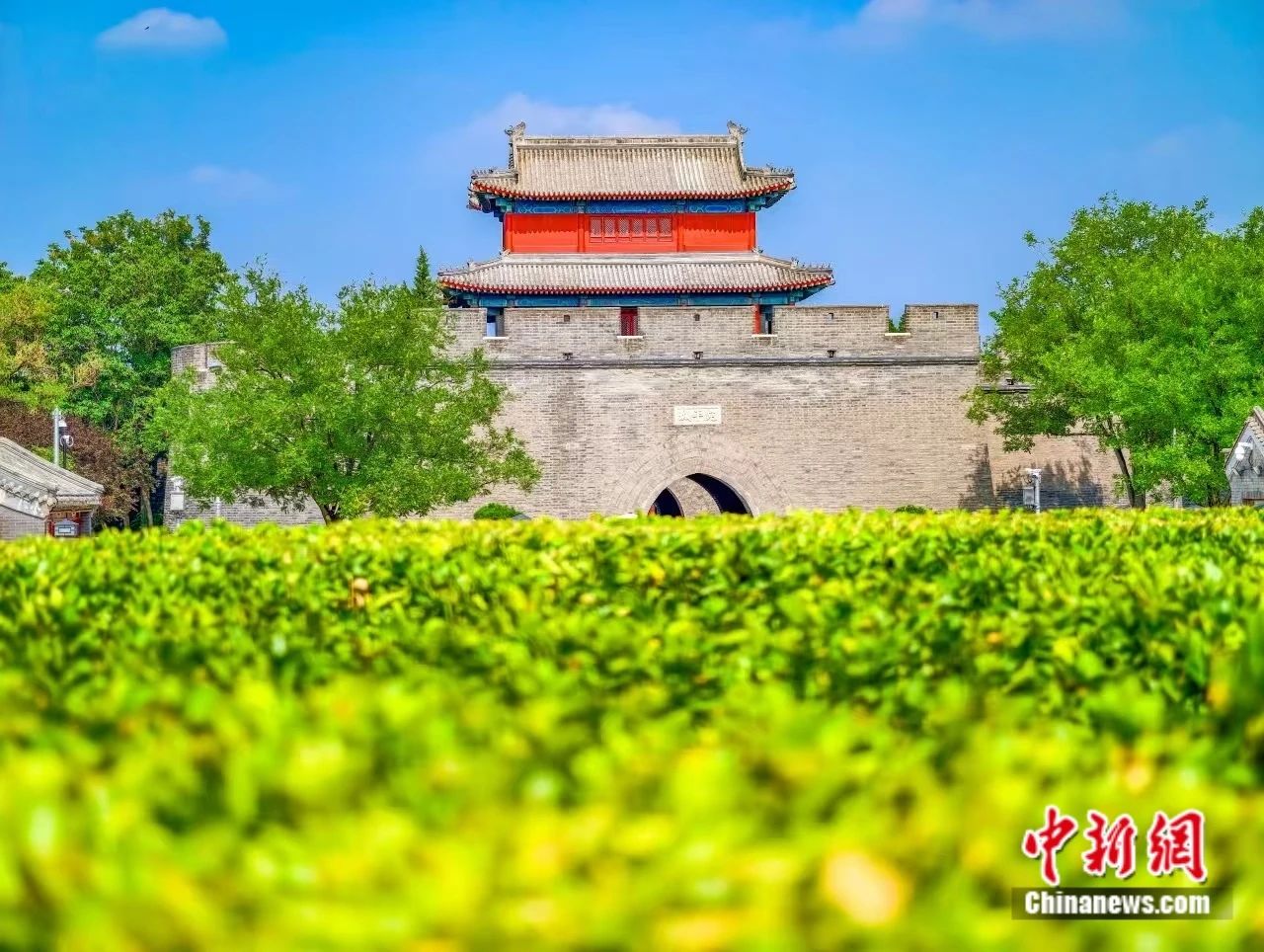 三百多岁的古城里灰墙黛瓦连片、红砖红瓦点缀的街区风貌正在形成宛平城西城门与中国人民抗日战争纪念雕塑园之间林间绿意伴着青灰色的城墙新建成的无界公园人们用镜头记录城市昔日伤痕与现代色彩