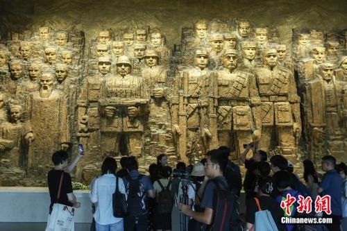 8⽉14⽇,⼩朋友参观中国⼈⺠抗⽇战争纪念雕塑园。 中新社记者 杨郁然 摄