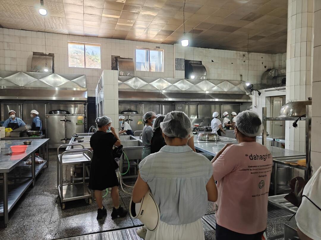 汇报结束后,在总务主任姚金宏及食堂工作人员的带领下,家长们戴上一次性帽子和口罩,走进了往日“闲人免进”的食堂后厨。