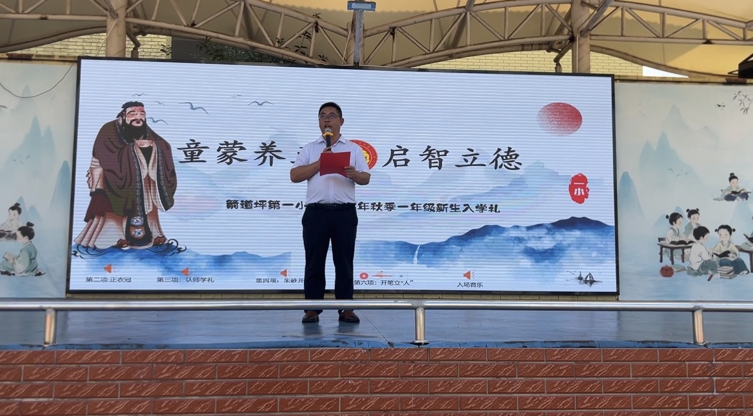 华声在线9月3日讯(通讯员 滕藤 刘慧 杨芳)2025年9月2日上午,箭道坪第一小学为全体一年级新生举行了以“童蒙养正 启智立德”为主题的入学礼仪式,这场充满中华传统文化韵味的活动,是孩子们迈出求学道路上的第一步,标志着孩子们正式开启了小学生活的新篇章。
