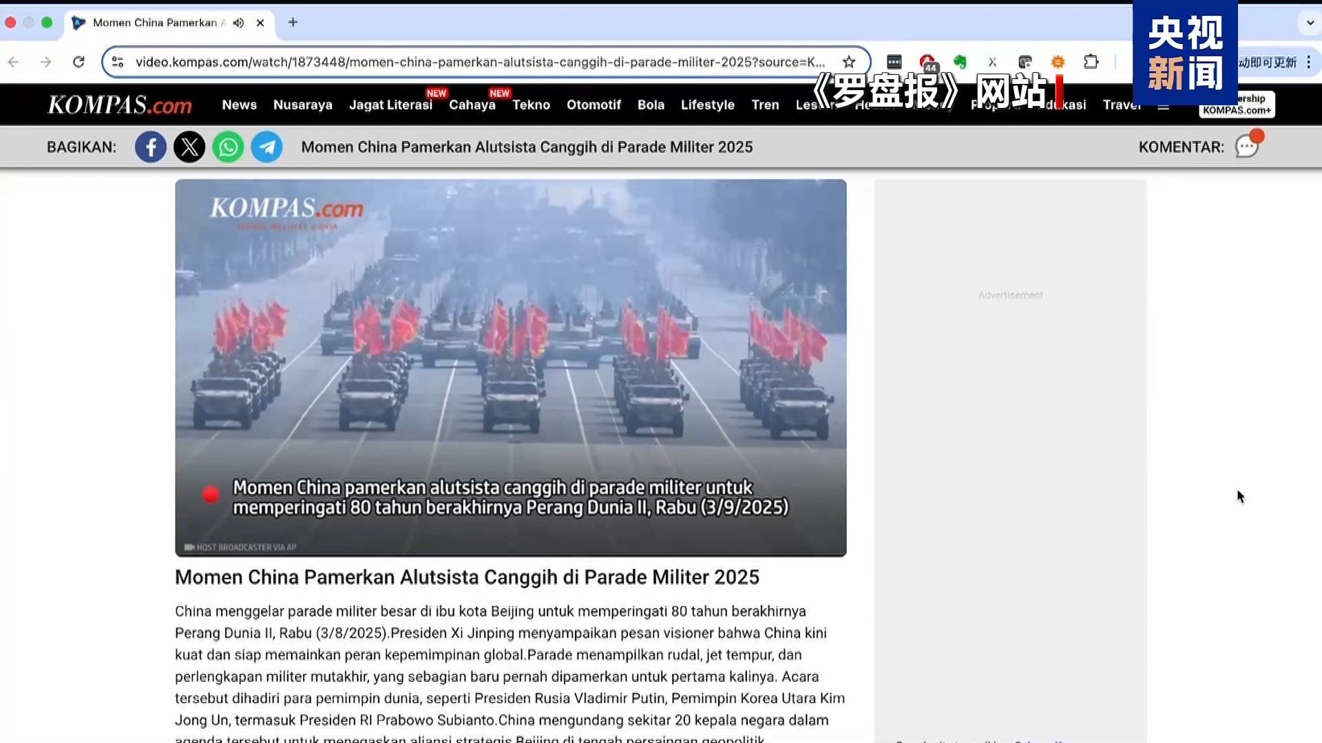 印尼《罗盘报》网站报道称,阅兵仪式展示了习近平主席领导下的中国现代化军事力量。