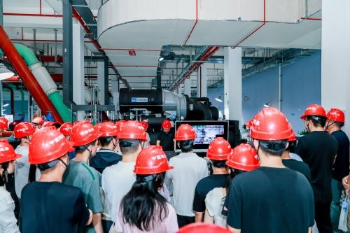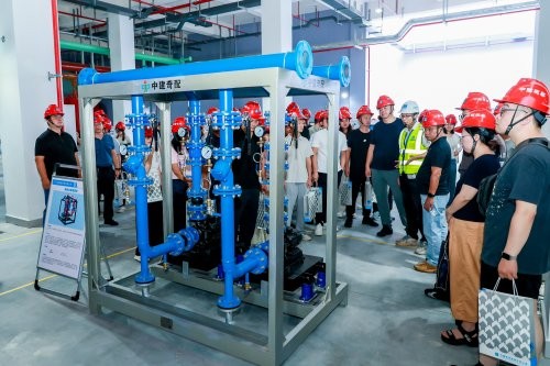 在专业人员的讲解和引导下,观摩团依次参观了涵盖智慧设计、智慧运维、中建奇配产品应用、新技术与新工艺等十大核心展区,深入了解了BIMbase云平台的全生命周期应用、能源站高度智能化集成系统、数字孪生运维管理平台等多项新型技术,以及装配式消防泵房、装配式高效机房等中建奇配系列创新成果。通过现场系统讲解与互动交流,观摩团全面了解了项目在智能建造和绿色能源等领域的系统化解决方案与工程实践。
