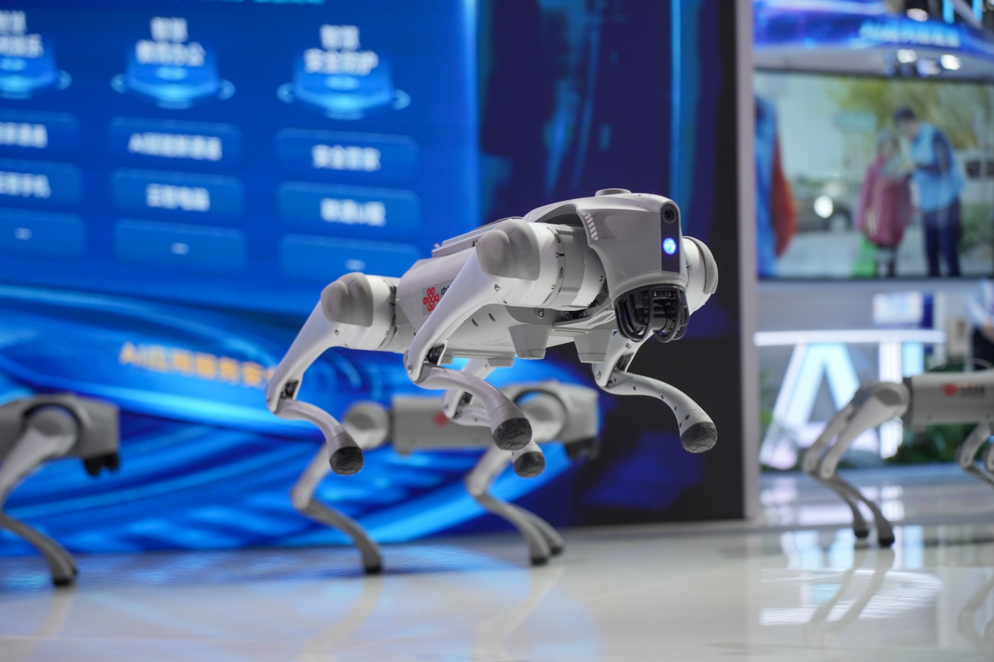 腾空而起的机械狗(央广网记者 俞烨 摄)