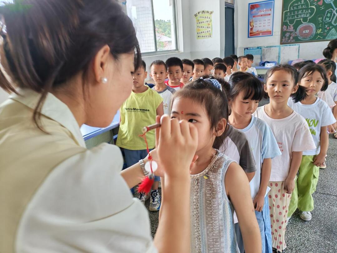 该校校长廖莎在入学仪式上致欢迎辞。随后,校长与学生代表共同开笔书写“人”字,教导新生端正做人。老师们为新生点朱砂启智,寓意开启智慧、眼明心亮。一年级任课教师以学科特色装扮精彩亮相,展现教学魅力。仪式最后,全体新生行庄重拜师礼,表达尊师之情。