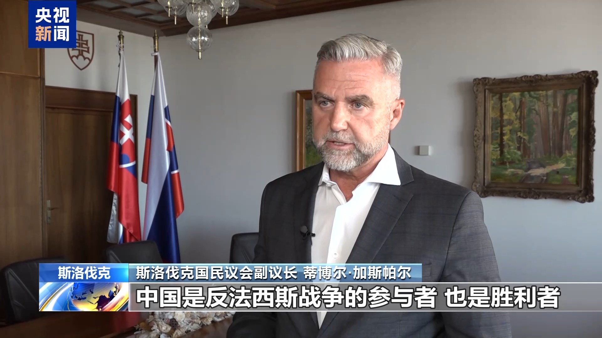 斯洛伐克国民议会副议长 蒂博尔·加斯帕尔:中国是反法西斯战争的参与者,也是胜利者。在这场战争中,中国付出了巨大牺牲,因此纪念反法西斯战争的结束,不仅在欧洲很重要,在中国同样重要。