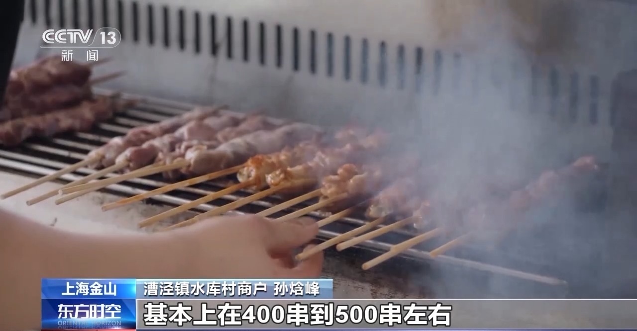 水库村的商户孙焓峰介绍,平时门店每天大概卖200串左右,自从“村超”开始之后,基本在400串到500串左右。