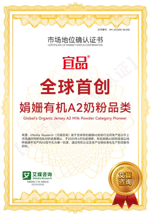宜品爱尼可的此次升级,正是对这一趋势的精准响应。在奶源上,产品从传统有机A2β-酪蛋白奶源,跃升至更为珍稀的娟姗有机A2β-酪蛋白奶源,并获艾媒咨询权威认证的“全球首创娟姗有机A2奶粉品类”称号。