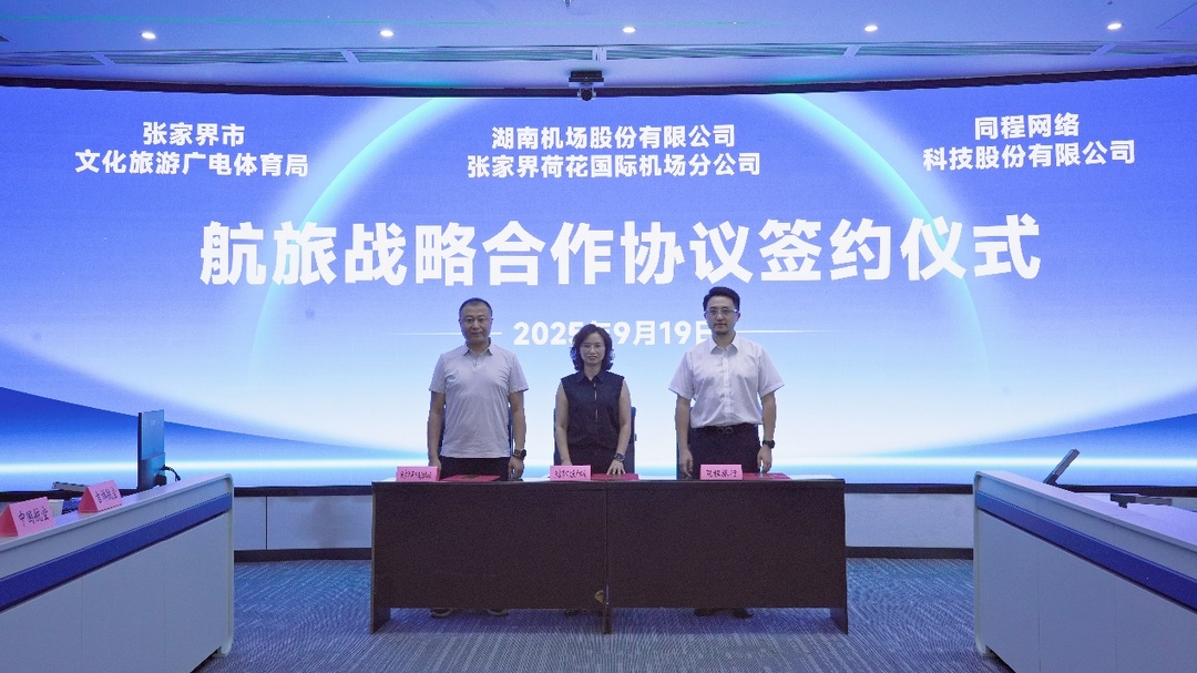 9月19日,同程旅行与张家界市文旅广体局、张家界荷花国际机场举行航旅战略合作签约仪式,此次合作协议签署后,同程旅行将与张家界市文旅广体局、张家界荷花国际机场共同探索新时期航旅融合发展之路,携手共建张家界“互联网+航空+文旅产业”融合发展新模式。