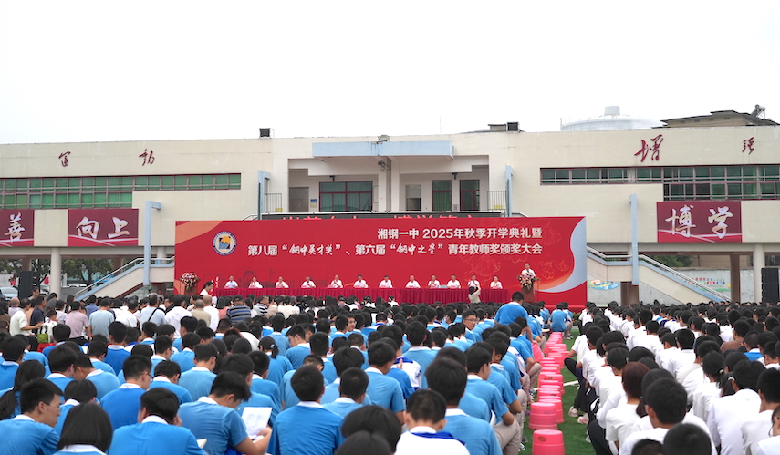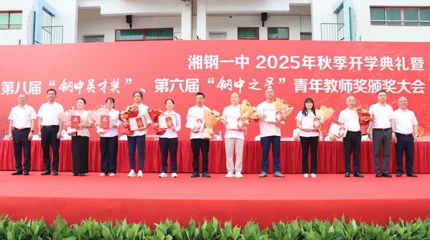 金风拂叶,丹桂凝香。2025年9月10日,恰逢第41个教师节,湘钢一中2025年秋季开学典礼暨第八届“钢中英才奖”、第六届“钢中之星”青年教师奖颁奖大会,在学校田径场盛大启幕。湘钢公司党委副书记(公司正职)张志钢、副总经理杜江,湘钢一中教育集团党委书记卢学农、校长王军等集团全体校级领导,高中部全体师生、初中部获奖师生齐聚一堂,共庆新学年,共证荣誉时刻,共话成长担当。大会由湘钢一中政教处主任胡孝江主持。