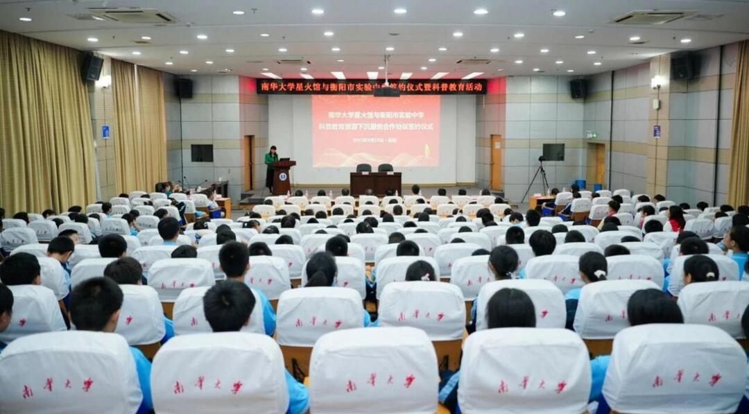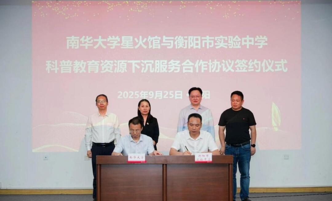 华声在线9月26日讯(通讯员 聂山人)9月25日下午,南华大学星火馆与衡阳市实验中学合作签约仪式在南华大学举行。双方正式签署《湖南省“高校星火馆”科普教育资源下沉服务合作协议》,标志着校际协同推进科学教育普及、贯通创新人才培养迈出关键一步。