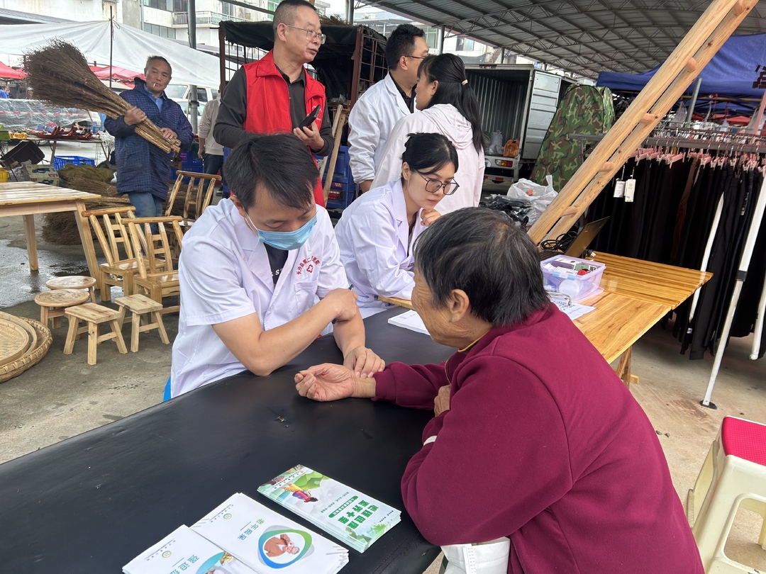 义诊中,医共体的中医专家通过“望、闻、问、切”四诊合参,结合体质辨识技术,为居民定制饮食调养、运动保健方案。针对高血压、颈肩腰腿痛患者,提出低盐饮食、八段锦锻炼等具体建议,并开具个性化健康处方。以热情的微笑践行优质服务,用通俗易懂的语言讲解病情及治疗方案,确保患者充分知情,增强治疗依从性。关娭毑颤巍巍的来到义诊台说“医师,我想开点中药,腿脚不方便,又不能去江背拿药”,娭毑,你看咯,我们把药帮您送到你们社区来。