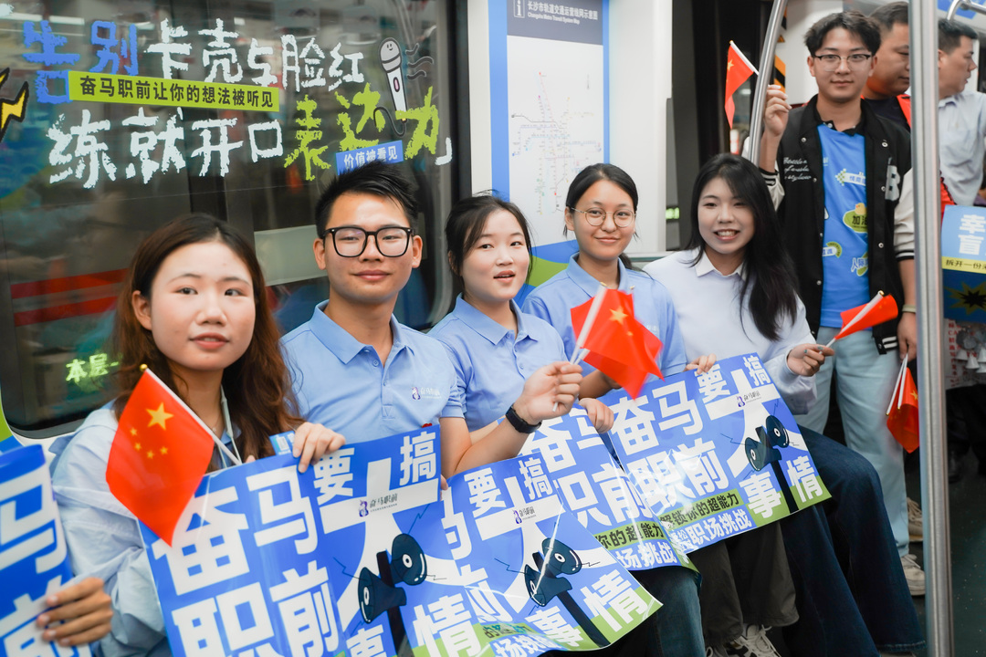 2025年9月15日,一列充满活力的“奋马职前主题列车”在长沙地铁2号线正式上线运行。这列由国内领先的大学生职前教育平台——奋马职前精心打造的地铁专列,以其独特的设计和丰富的内涵,为长沙的高校大学生带来了一段沉浸式的职前教育新体验。