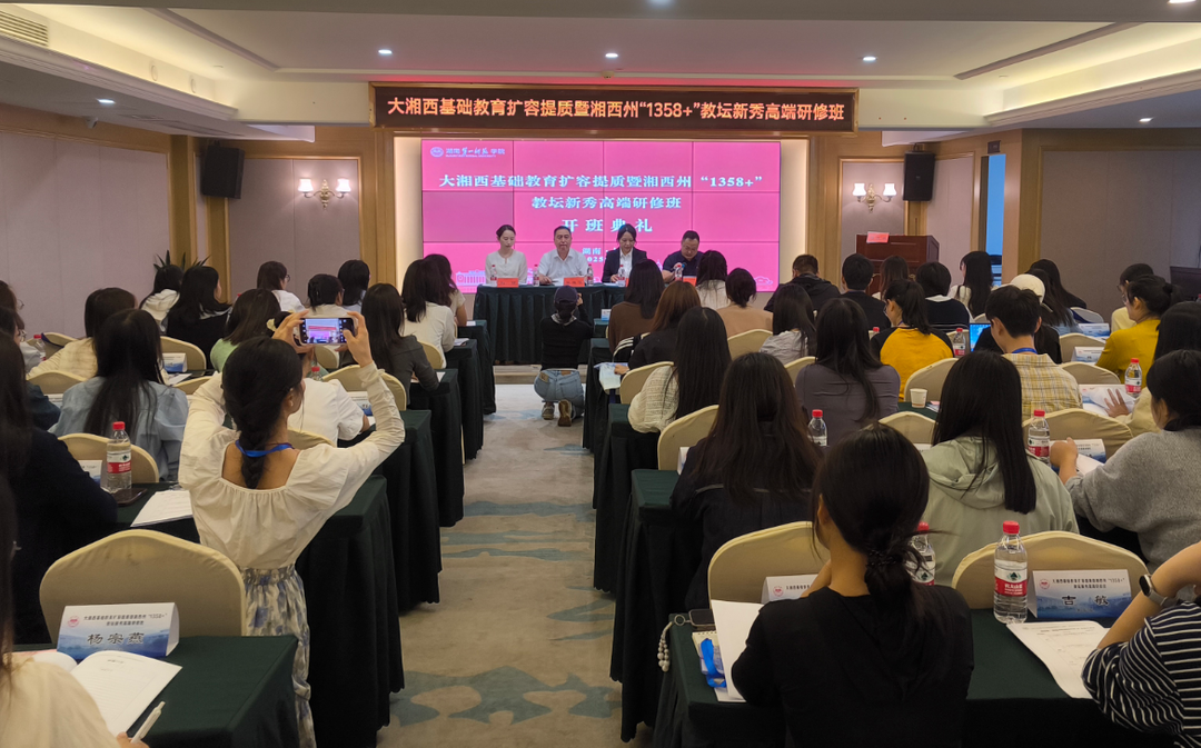 华声在线10月14日讯(通讯员 刘斌)10月13日上午,大湘西基础教育扩容提质暨湘西州“1358+”教坛新秀高端研修班开班典礼在长沙举行。此次研修班由湖南第一师范学院现代教育发展学院承办,来自湘西州的100名“1358+”教坛新秀齐聚星城,开启为期4天的专业化成长之旅。