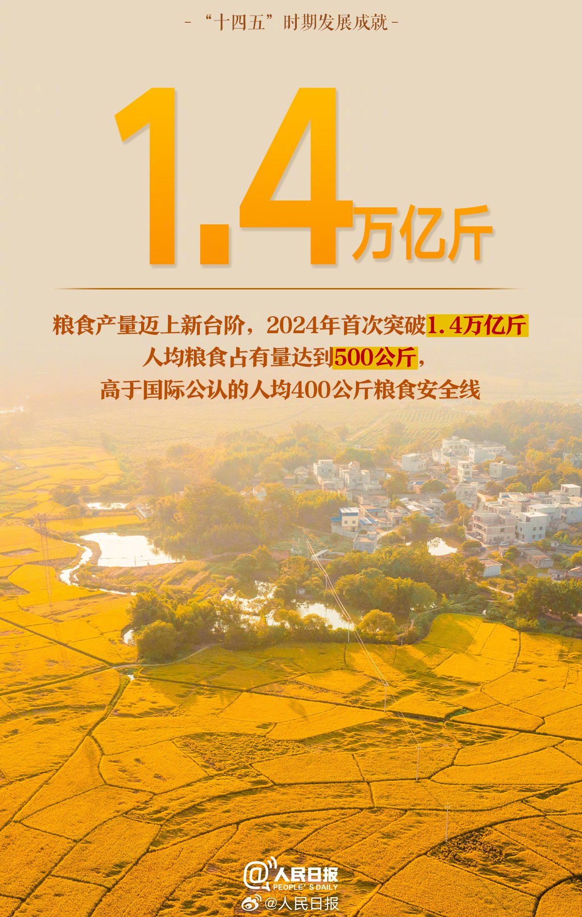 ①经济增量预计超过35万亿元;②2024年粮食产量首次突破1.4万亿斤;③4项文化遗产成功列入《世界遗产名录》;④人均预期寿命达到79岁……党的二十届四中全会即将召开,一组数字,回望“十四五”时期我国的发展成就。