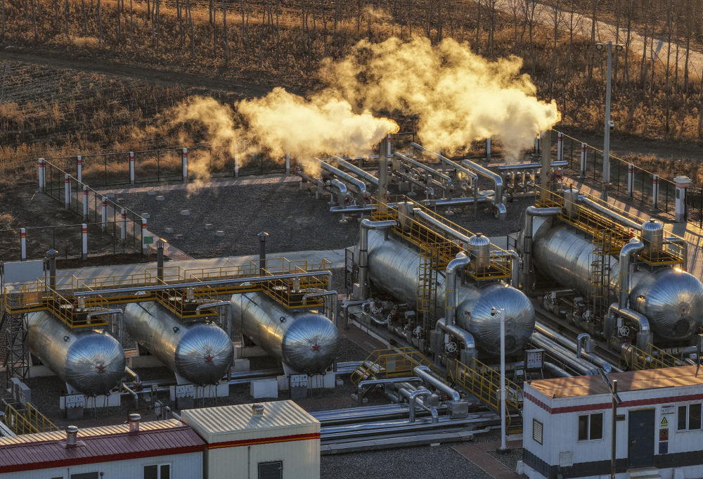 ↑ 12月4日,在大庆古龙陆相页岩油国家级示范区古页1号站,中国石油大庆油田第九采油厂页岩油生产运行项目经理部生产操作员对站内油气处理设备开展巡检和维护保养工作。