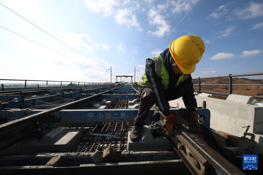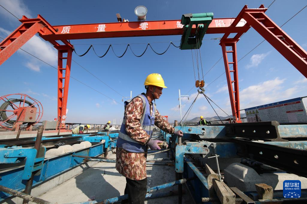 12月7日,在云南省昭通市昭阳区守望回族乡,中铁二局工人在渝昆高铁卡子村特大桥进行无砟道床作业。