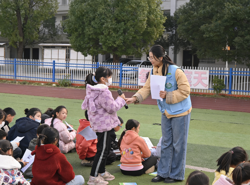 12月5日,由2025届临澧县选调生组成的“青山”生态文明宣讲团联合佘市桥镇人民政府走进佘市中心小学,开展“青赴绿意·大美湖湘”青少年生态文明宣讲活动。活动以提升青少年的生态文明素养、引导绿色生活方式为目标,通过生动讲解与趣味互动,让生态理念在校园生根发芽,吸引了200余名学生积极参与。