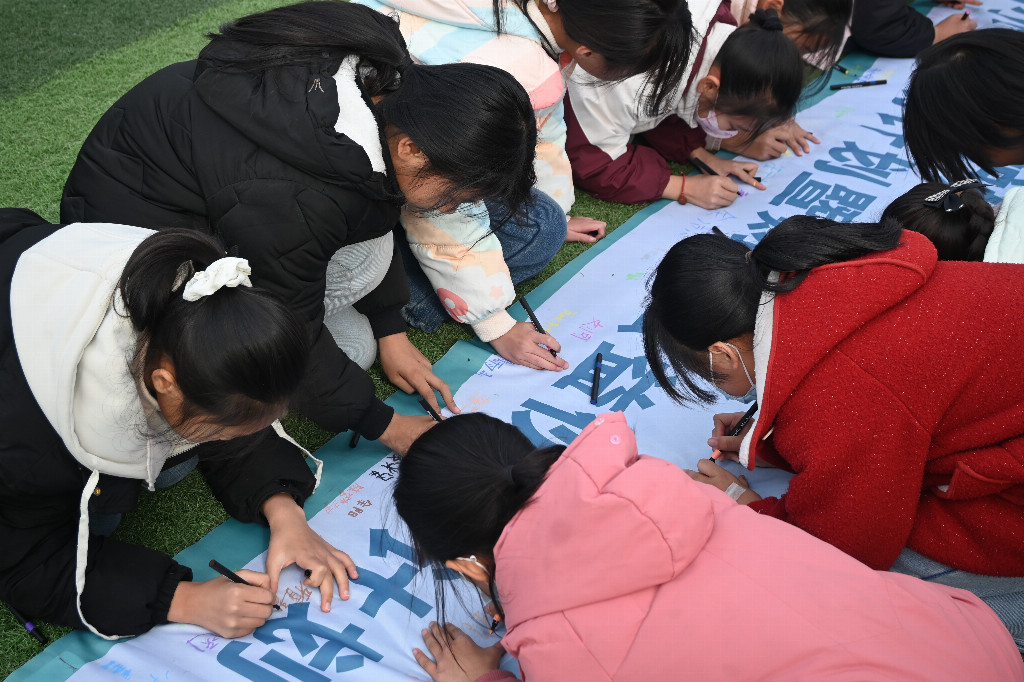 图 | 学生们在横幅签名