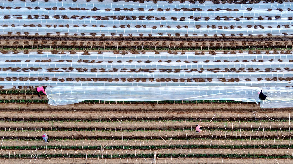 12月11日,在山东省临沂市平邑县地方镇,村民为种植的蔬菜幼苗覆盖保温薄膜(无人机照片)。 新华社发(武纪全摄)这些硬核举措的背后,是守护民生的责任与担当。