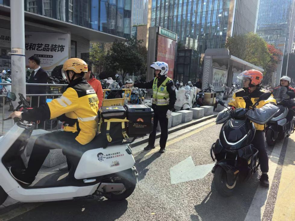 为有效破解这一管理难题,公安交管湘江新区大队深入开展多维研判与实地调研,精准识别问题症结,以刚性管理、柔性引导、社会共治“三位一体”治理模式,系统推进家用、共享、外卖三类电动车的综合治理,全力净化片区交通环境。