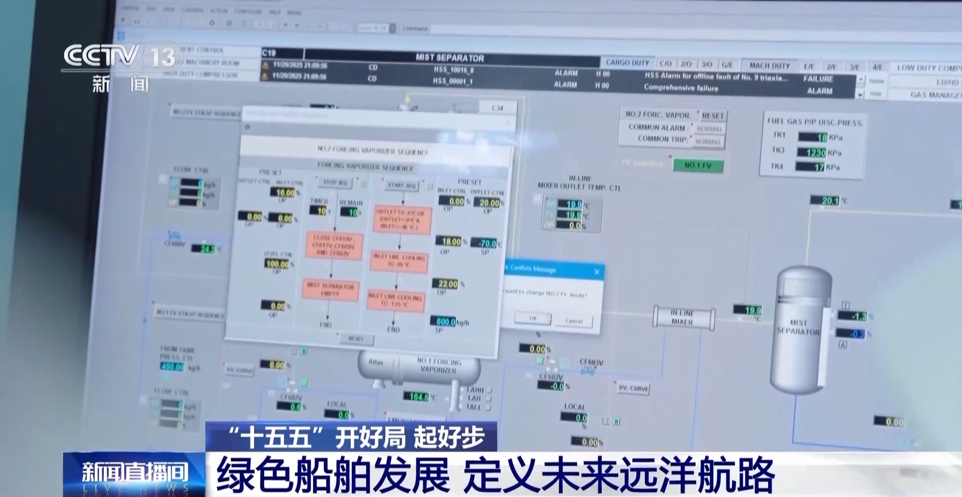 杨春华:我们研发布局的新型船舶,考虑了甲醇、LNG清洁能源相关的绿色技术,还有其他的节能设计,除了要符合国际最新碳排放标准之外,这也是市场的选择,可以说谁掌握了绿色技术,未来就掌握了市场的主导权。