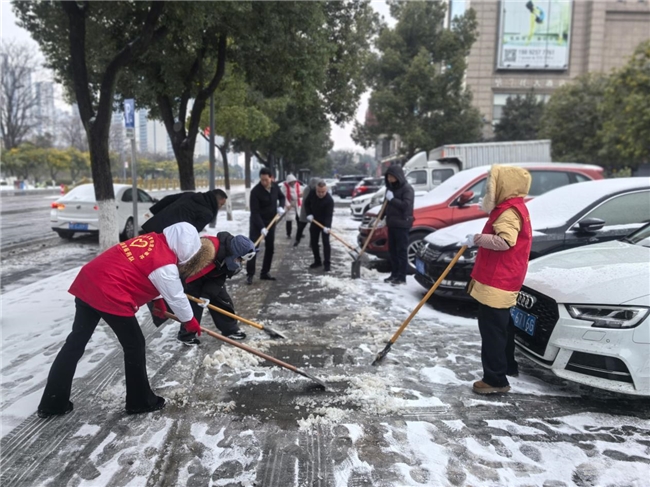 瑞雪纷飞虽添景,路面积雪却扰行。1月20日下午,为切实保障辖区居民出行安全,尤其是幼儿园孩童、购物群众、观影以及外出用餐市民等重点群体的通行便利,岳阳市南湖新区求索街道云梦社区党组织充分发挥党建引领核心作用,以联点帮扶机制为纽带,联合南湖新区纪工委共同开展重点区域集中铲雪行动。区纪工委主动响应、迅速集结力量,与社区工作人员、志愿者并肩作战,重点清理幼儿园门前、超市出入口、影院周边等人员密集区域的积雪与薄冰,用实干担当打通民生出行“安全通道”,让党建红凝聚起坚实的帮扶力量。