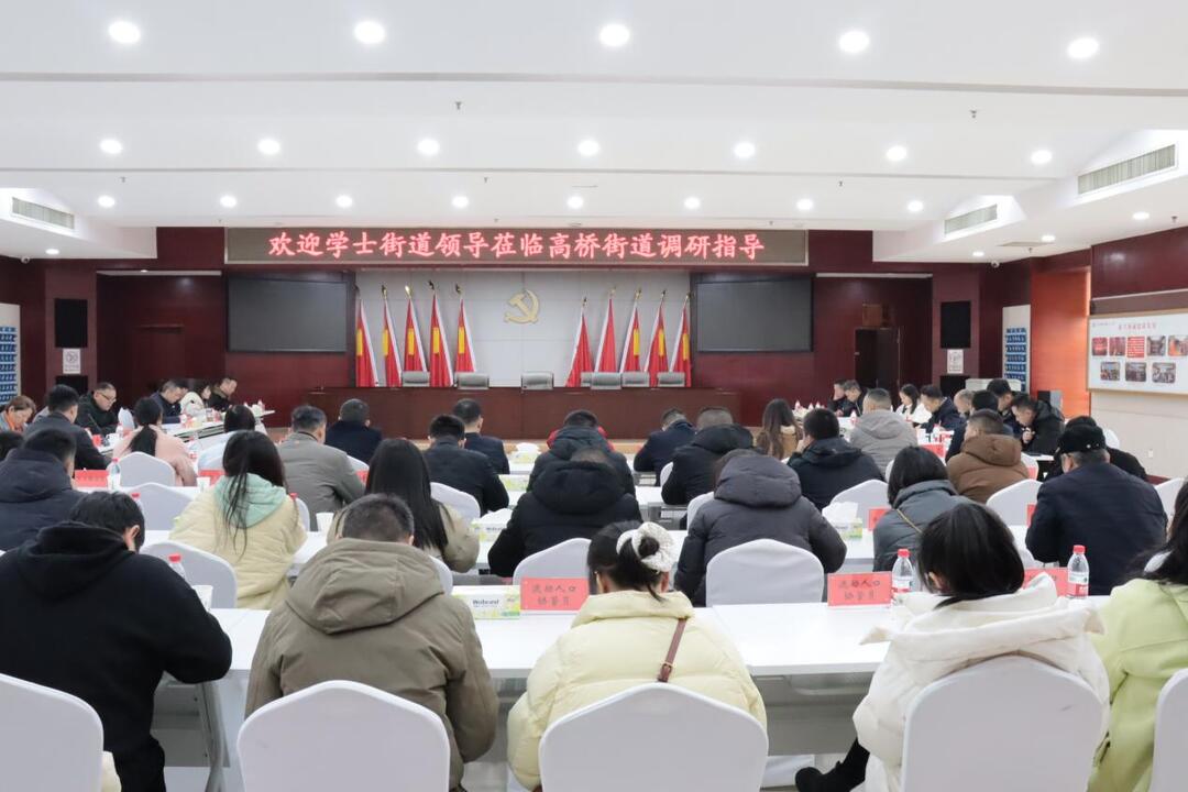 在高桥街道,调研组详细听取了该街道围绕“矛盾化解法治化、信访工作法治化、营商环境法治化、治理体系智能化”的创新实践介绍。重点学习了其通过“源头预防、调解优先、法治引领、科技赋能”系统推进矛盾纠纷多元化解的有效机制,以及依托“多网合一”网格体系、“石榴籽工作室”等特色平台,构建起民情早感知、矛盾早介入、问题早化解的闭环治理模式。随后双方就流动人口管理、新就业群体服务等方面进行了交流探讨。