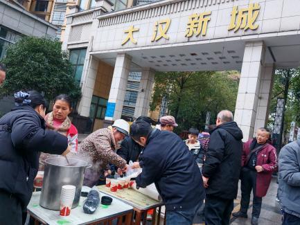 腊八节时,各分公司更是“花式”送暖。吉首雅溪分公司天未亮便在厨房忙碌,精选糯米、红豆等八种食材熬煮腊八粥,搭配营养鸡蛋,在小区大门处为早出业主送上;澧县分公司开展“腊八送暖,姜茶传情”活动,7:30-9:00在小区主要出入口免费赠饮热姜茶;绥宁分公司不仅派送腊八粥,还准备了承载美好寓意的对联与福字,业主们手持福字,脸上满是幸福笑意,邻里间的问候与道谢,让寒冬充满烟火气。