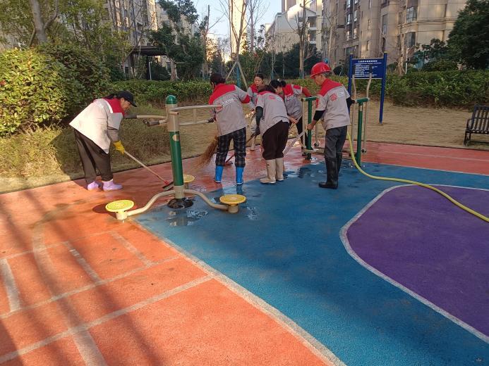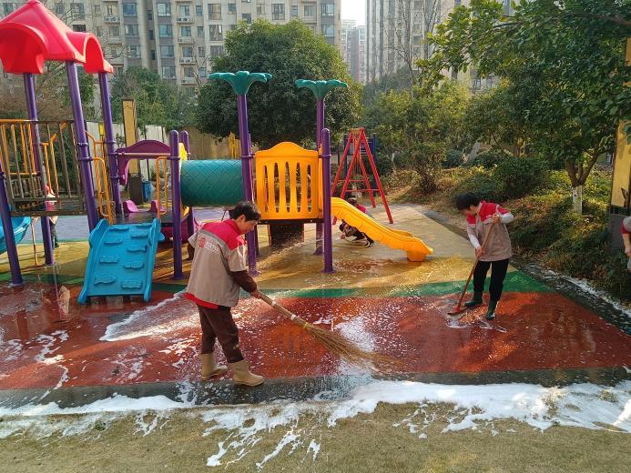 澧州龙城分公司1月13-15日14:30-16:30,组织保洁部全员清洗园区路面、游乐场与景观设施。针对路面尘土油污,用高压冲洗搭配环保清洁剂快速剥离污渍;儿童游乐场采用温和无刺激清洁方案,为孩子打造安全玩乐空间;精细化擦洗养护雕塑、水景、绿植围栏等景观设施,去除污垢同时保护材质,让园区重焕生机。