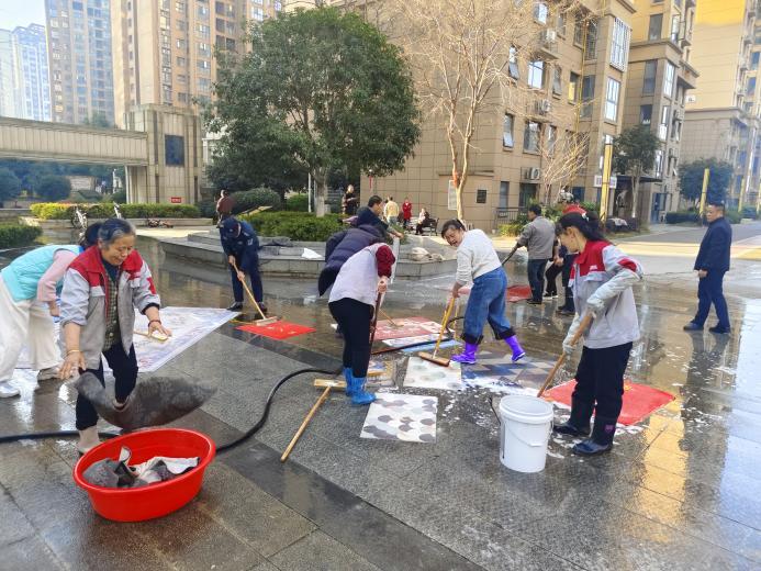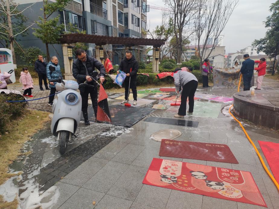 绥宁分公司1月10日开展免费清洗地毯活动,前期通过业主群、公告栏发布通知。活动当天,业主们携带地毯、地垫前往指定区域,工作人员配备高压水枪与专用清洁剂,遵循浸泡、刷洗、冲洗、沥干流程,细致清洁顽固污渍。对行动不便的老年业主,还提供上门取送服务,切实解决业主大件地毯清洗难题。