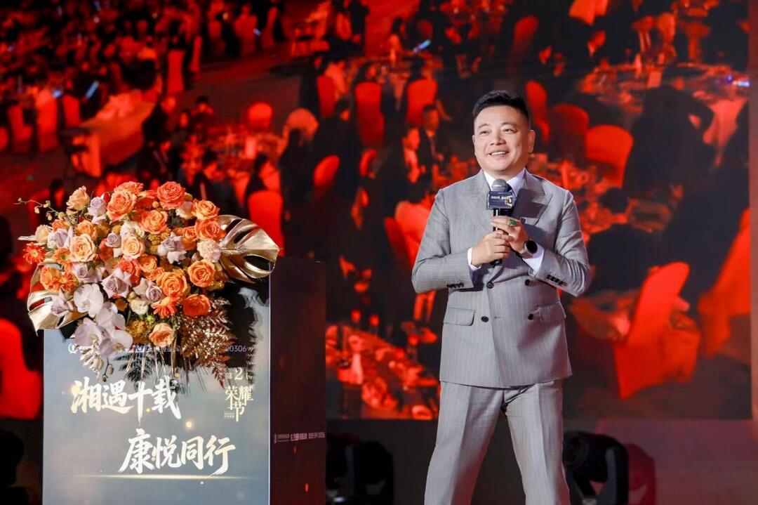 15时35分,2025年度总结表彰大会接续举行。开场视频《十年荣光·悦见不凡》以光影回顾华中区十年发展历程,伴随荣耀火柱点亮,五大篇章表彰逐一揭晓。杨定财董事长在致辞中表示:“十年间,华中区从单店到连锁,从区域到全国,离不开每一位康悦人的坚守与创新。”