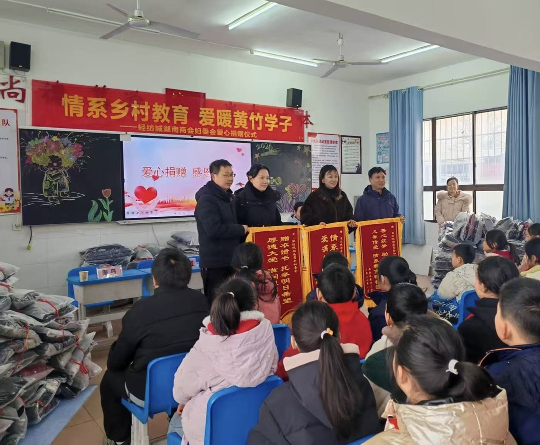 寒冬送暖,情系童心。近日,由衡阳市南岳区南岳完小党支部发起的爱心帮扶活动,成功链接浙江绍兴轻纺城湖南商会妇委会的公益力量,募集价值7万余元的爱心物资,为黄竹小学、寿岳中心学校、樟树桥小学及南岳完小的部分困难留守儿童送去冬日暖意与成长希望。