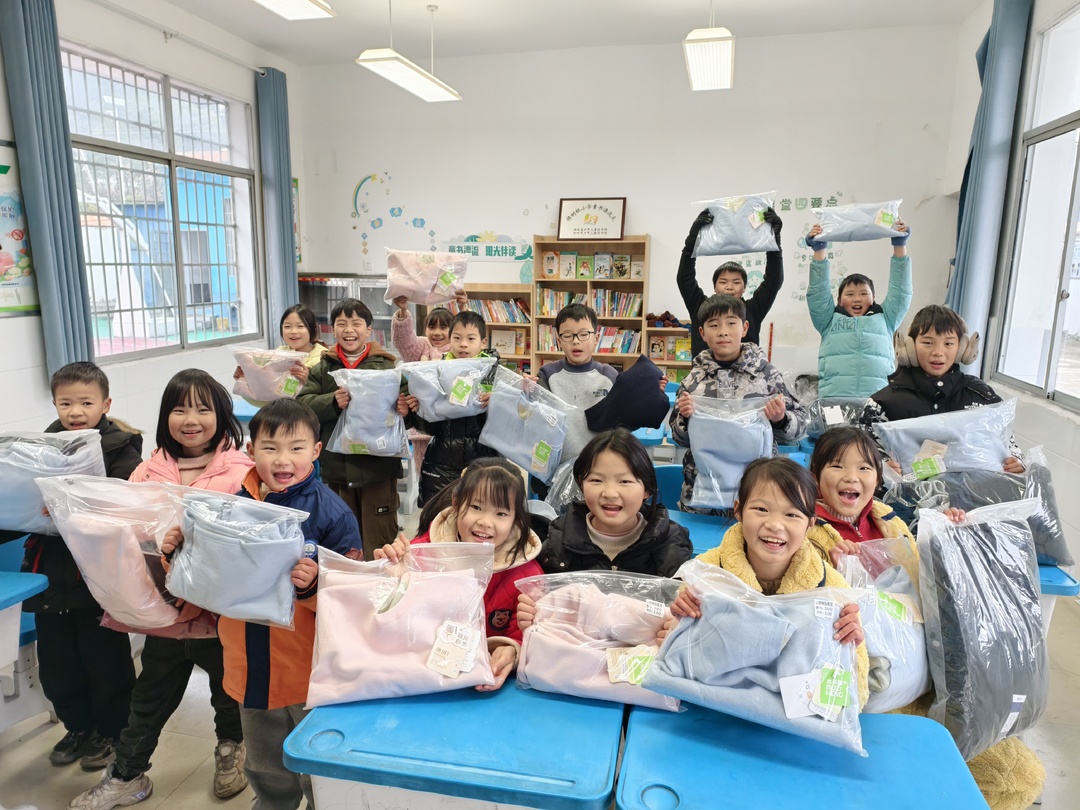 此次活动源于南岳完小党支部对学校困难留守儿童和联盟校孩子的长期关注,在日常走访中发现部分孩子存在御寒物资不足、课外读物匮乏的难题后,党支部主动对接社会爱心资源,与素有公益传统的浙江绍兴轻纺城湖南商会妇委会达成帮扶共识。商会迅速响应并精心筹备物资,涵盖羽绒服、棉裤等冬季御寒衣物,以及课外书本等学习用品,所有物资均精准匹配孩子生活学习需求,近日已顺利送达并按需分发。“穿上新羽绒服,再也不怕冷了!”“这些故事书我早就想看了,太开心了!”拿到爱心物资的孩子们脸上洋溢着灿烂的笑容,稚嫩的话语中满是喜悦与感激。