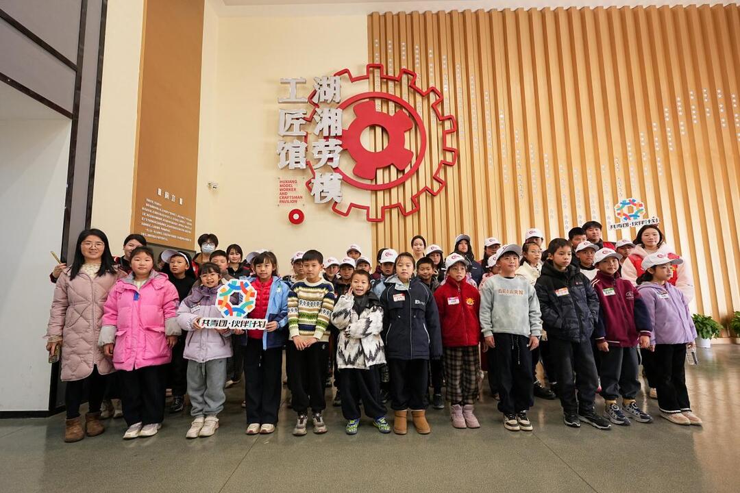 紧随其后,首场研学课程“编织技艺体验”在刘凤其老师的指导下展开。孩子们在指尖穿梭中感受传统工艺的魅力,体悟精益求精的工匠态度。课程结束后,全体营员参观了湖湘劳模工匠馆。在贺美娟老师的带领下,一幅幅奋斗画卷、一件件创新成果,将劳模们爱岗敬业、勇于创新的精神生动呈现,深深触动了在场的每一位青少年。