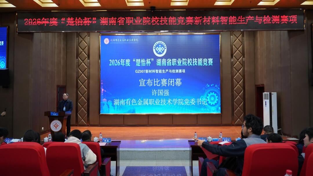 2月1日至3日,湖南有色金属职业技术学院成功承办了2026年度“楚怡杯”湖南省职业院校技能竞赛新材料智能生产与检测赛项(高职组)。本次大赛由湖南省教育厅、湖南省人力资源和社会保障厅联合主办,吸引了来自全省18所高职院校的18支代表队、54名优秀选手同台竞技,展现新时代高职学子的专业技能与创新精神。