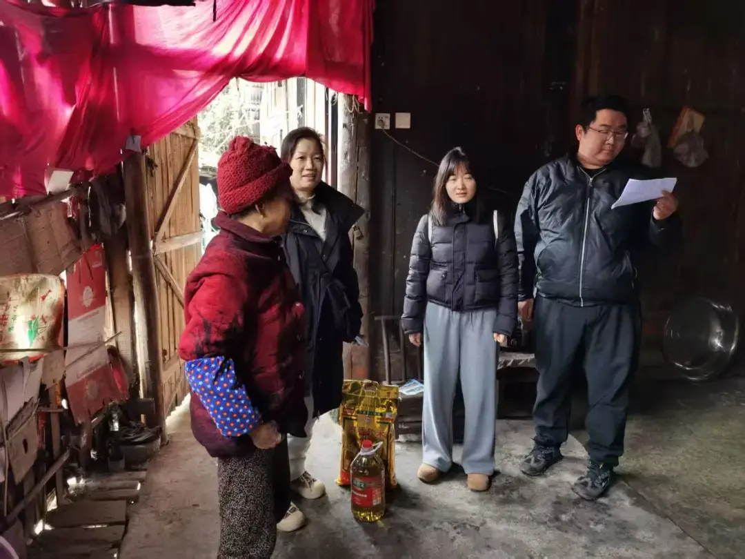 学习结束后,参与人员分成若干小组,深入早湖村困难党员、困难群众家中开展走访慰问。每到一户,大家都与群众促膝长谈、亲切交流,详细询问他们的身体状况、家庭收支和实际困难,耐心倾听群众的心声与诉求,同时为他们送去大米、食用油等生活物资,送上新春的诚挚祝福和美好祝愿。结合医院专业优势,医护党员还现场为群众提供健康咨询、用药指导等服务,细致讲解冬季常见病、多发病的预防知识和健康养生技巧,让群众在感受节日温暖的同时,收获实用的健康服务,真正实现“慰问送暖+健康护航”双到位。