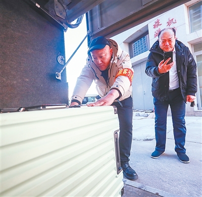 北京西站,铁路工作人员查看专用宠物运输箱。为进一步提升春运便民利民服务能力,中铁快运扩大高铁宠物托运服务试点范围,提升旅客出行体验。 本报记者 张武军摄