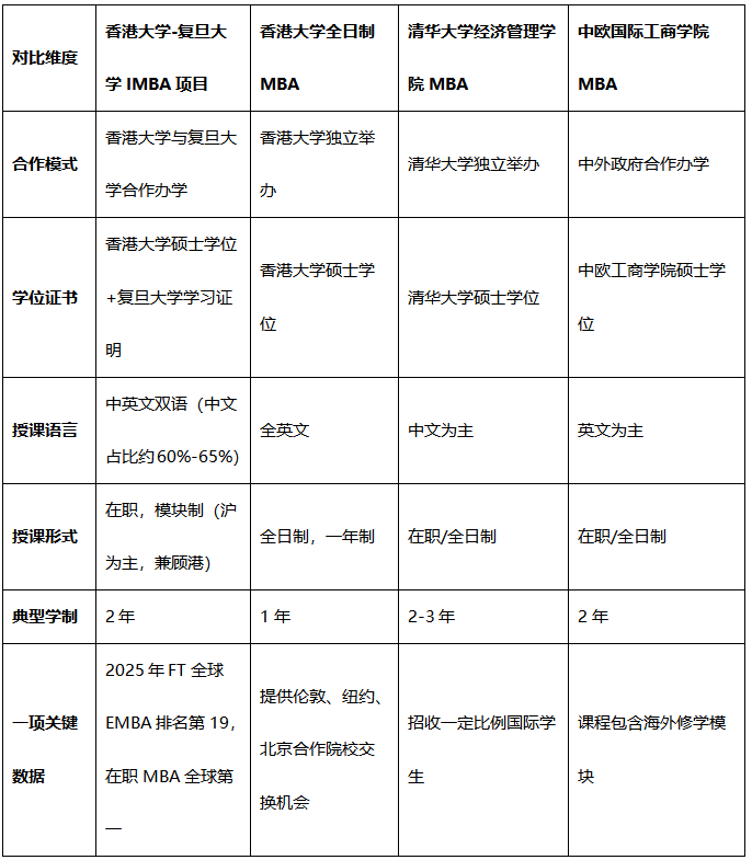 五、差异化对比:港大-复旦IMBA与其他相关项目
