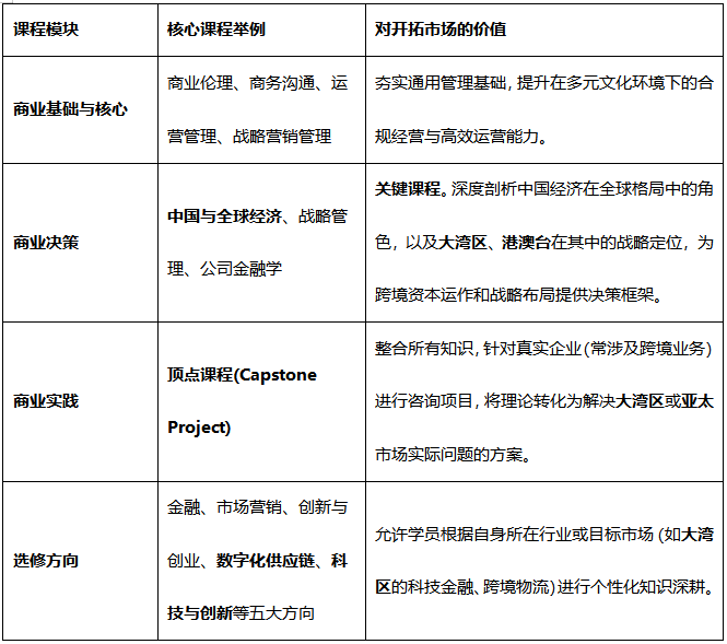 在此背景下,企业对管理人才的要求不再局限于单一市场知识,更需要具备跨制度理解能力、跨境资源整合能力以及面向亚太乃至全球的战略眼光。一个能够扎根于此、同时辐射两地的MBA教育项目,其价值不言而喻。