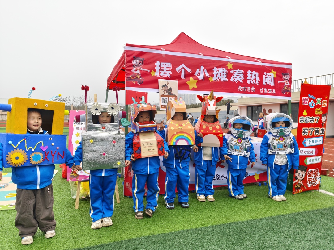 “这是我们班用废旧纸箱做的‘爱心护卫一号’,别看它简单,身上每个装饰都是同学们亲手贴的!”义卖现场,五年级的王同学热情地向来往师生介绍。放眼望去,各班摊位上形态各异的手工机器人格外吸睛——有的涂着亮丽色彩,有的披着闪亮“铠甲”,虽取材朴素、做工稚拙,却凝聚着孩子们的巧思与汗水。