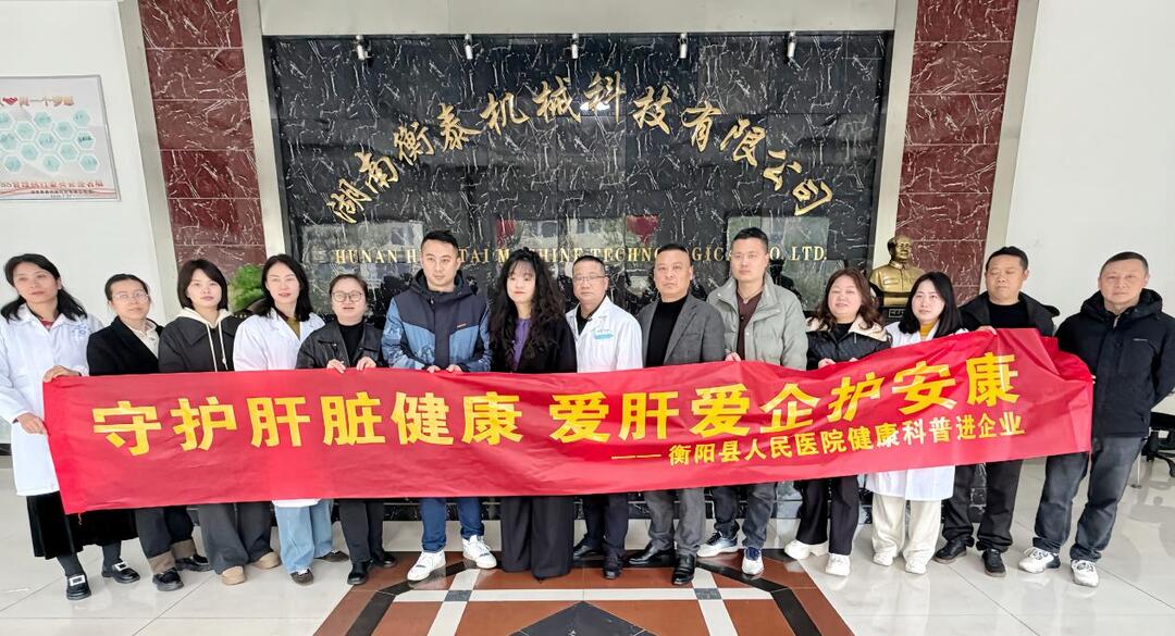 3月18日是第26个全国爱肝日,当天上午衡阳县人民医院联合县疾控中心,走进湖南衡泰机械科技有限公司,开展“健康方舟·五进护航行动”之“守护肝脏健康,爱肝爱企护安康”主题科普活动。通过义诊咨询、健康讲座、急救技能培训等形式,将专业的医疗服务和实用的健康知识送到企业职工身边,以实际行动关爱职场人群肝脏健康,助力企业高质量发展。