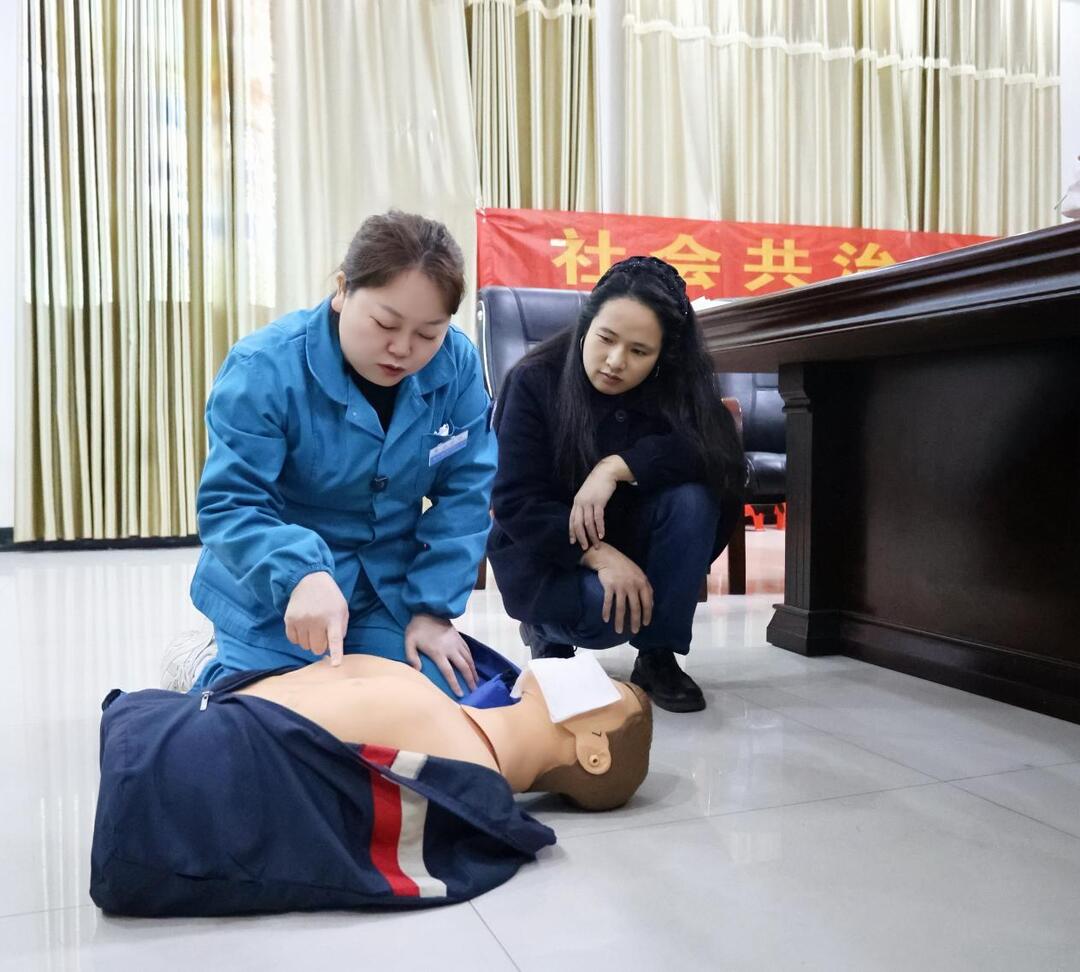 “双手交叉,掌根用力,手臂垂直,按下去……”在急救技术培训环节,体检中心护士长邹红菱、急诊科护士长龙良英利用模拟人教具,分步演示心肺复苏术和海姆立克急救法的操作要领。员工们踊跃上前,在专家指导下练习按压频率、深度及气道梗阻急救手法。“以前只在视频里看过,今天亲手操作,印象更深刻,关键时刻真能救命!”一位刚刚完成实操的员工感慨道。