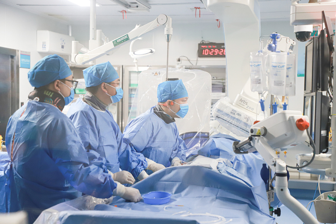 科室团队迅速完善脑血管相关检查,明确诊断为右侧后交通动脉瘤破裂导致蛛网膜下腔出血。颅内动脉瘤被称为颅内“不定时炸弹”,尤其是破裂后出血死亡率极高。科室立即组织评估,决定为患者实施脑血管介入栓塞术。