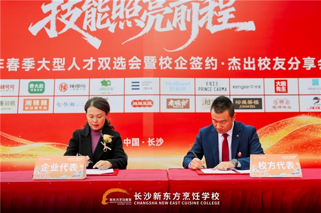 为进一步强化产教融合,实现校企资源的优化配置与优势互补,长沙新东方与会胜餐饮、广州市萍缘、上海翔灵、龙牌等多家优质企业现场签订校企合作协议,为新合作企业授牌;龙牌、辣妹子等知名企业与学校完成互授牌匾、聘任仪式,标志着校企合作迈入更深层次、更广领域。