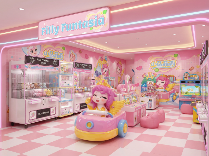 更具想象力的是“IP周边+娱乐”的互动模式创新。例如,在成都春糖会上,小马菲莉将夹娃娃机与零食、毛绒公仔、盲盒等IP周边结合,吸引大量专业观众参与。又例如,通过在摇摇车上嵌入《小马菲莉之缤纷仙境》系列儿歌,看似简单的快乐,更是一场精心设计、认真对待的沉浸式魔法旅程。这种将IP授权从单一产品扩展到互动体验的打法,经过市场的严苛考验,授权产品已覆盖了全国数百家儿童游乐机构,为游艺设备客户提供了全新的盈利增长点。