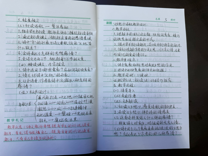 研讨会期间,穿插了优秀教案展示。此前,语文名师工作室在县教研室领导下,组织了一次全县语文教师手写教案比赛。这次展示的就是评选出来的部分优秀教案。一份份设计精巧的教案展现了教师们扎实的教学功底,老师们驻足翻阅、交流心得,纷纷表示,这样的活动让我们获益匪浅。