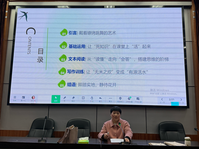 接着,名师工作室骨干教师奉献的两场微讲座接续开讲,为备考实践提供有力支撑。清源中学郝红梅老师作《夯实三块基石,抓好三个环节》微讲座,结合学生典型失分案例,提出“夯实基础+思维训练+读写结合”的教学策略,强调备考要靶向发力。洪桥镇中心学校彭丽老师作《浅谈中考语文阅读理解复习策略》微讲座,从锚定目标、答题规范、优化训练、夯实积累、分层指导等方面系统梳理方法,倡导以生为本、精准施策。