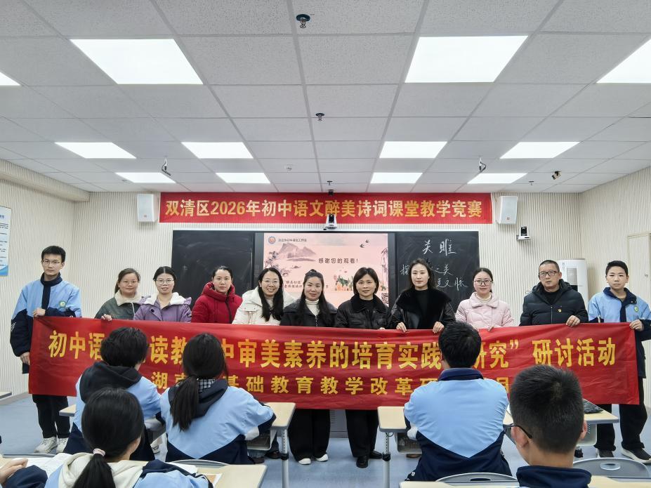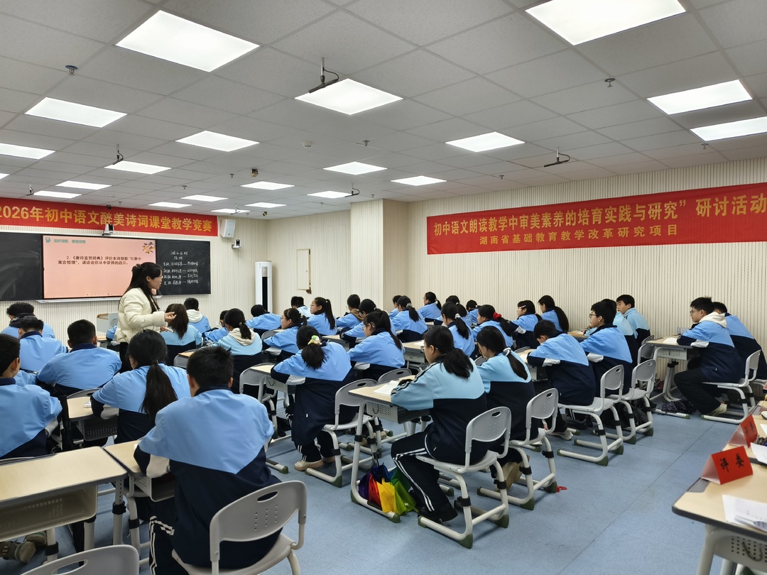 华声在线3月20日讯(通讯员 秦桂兰)为深化“初中语文朗读教学中审美素养的培育实践与研究”课题研究,探索古诗词课堂中朗读指导的有效策略,3月18日至20日,由该课题组与双清区赵亚玲初中语文工作室联合主办的双清区初中语文“醉美诗词”课堂教学竞赛在明德学校顺利举行。本次活动创新设置“无生模拟课堂”与“有生现场课堂”双轨赛制,既考查教师的教学设计功力,又检验真实课堂中的生成智慧,为课题研究与教学实践搭建了深度对话的平台。