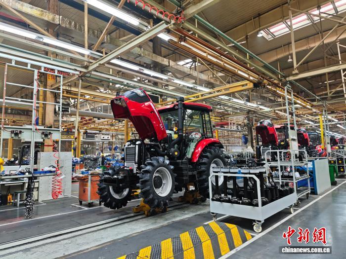 洛阳中国一拖生产线上,各种型号的国产农机蓄势待发。中新网记者 刘越 摄